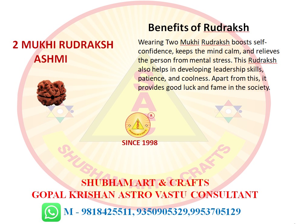 Wearing Two Mukhi Rudraksh boosts self-confidence, keeps the mind calm, and relieves the person from mental stress. This Rudraksh also helps in developing leadership skills, patience, and coolness. Apart from this, it provides good luck and fame in the society.