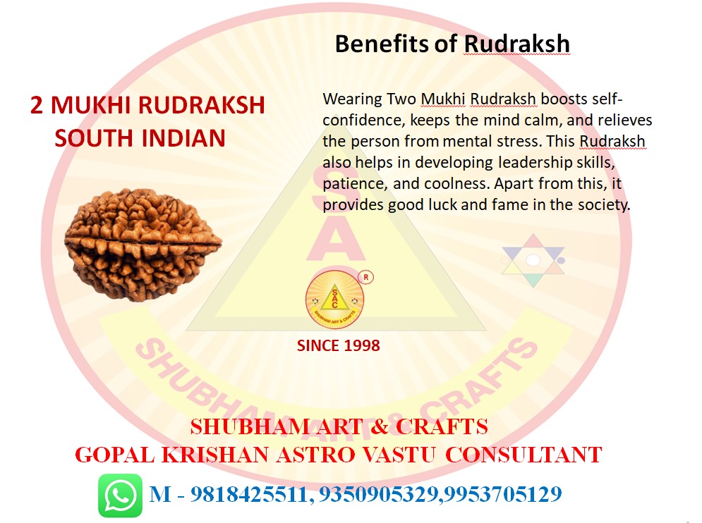 Wearing Two Mukhi Rudraksh boosts self-confidence, keeps the mind calm, and relieves the person from mental stress. This Rudraksh also helps in developing leadership skills, patience, and coolness. Apart from this, it provides good luck and fame in the society.