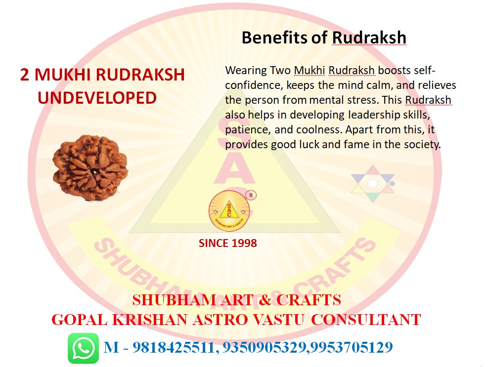 Wearing Two Mukhi Rudraksh boosts self-confidence, keeps the mind calm, and relieves the person from mental stress. This Rudraksh also helps in developing leadership skills, patience, and coolness. Apart from this, it provides good luck and fame in the society.