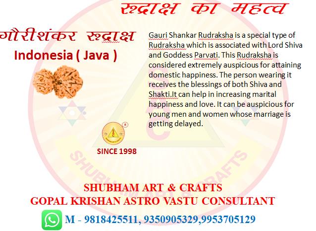 Gauri Shankar Rudraksha is a special type of Rudraksha which is associated with Lord Shiva and Goddess Parvati. This Rudraksha is considered extremely auspicious for attaining domestic happiness. The person wearing it receives the blessings of both Shiva and Shakti.It can help in increasing marital happiness and love. It can be auspicious for young men and women whose marriage is getting delayed.
