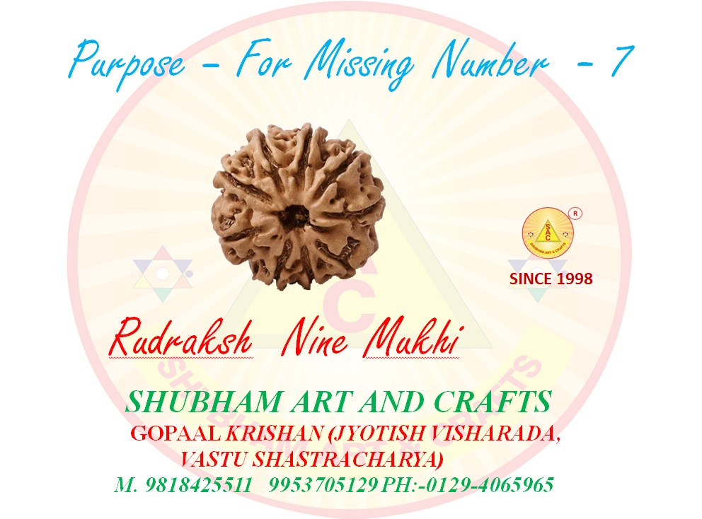 Rudraksh for a missing number 7 in numerology, the 9 Mukhi (Nine-Faced) Rudraksha is recommended, as it’s linked to the number 7 and planet Ketu. The 9 Mukhi Rudraksha offers strength, courage, and protection, representing Goddess Durga (Navadurga) and ruling planet Ketu, helping overcome fear, negativity, and laziness while boosting confidence, self-realization, and spiritual growth for better mental clarity and detachment from worldly illusions.