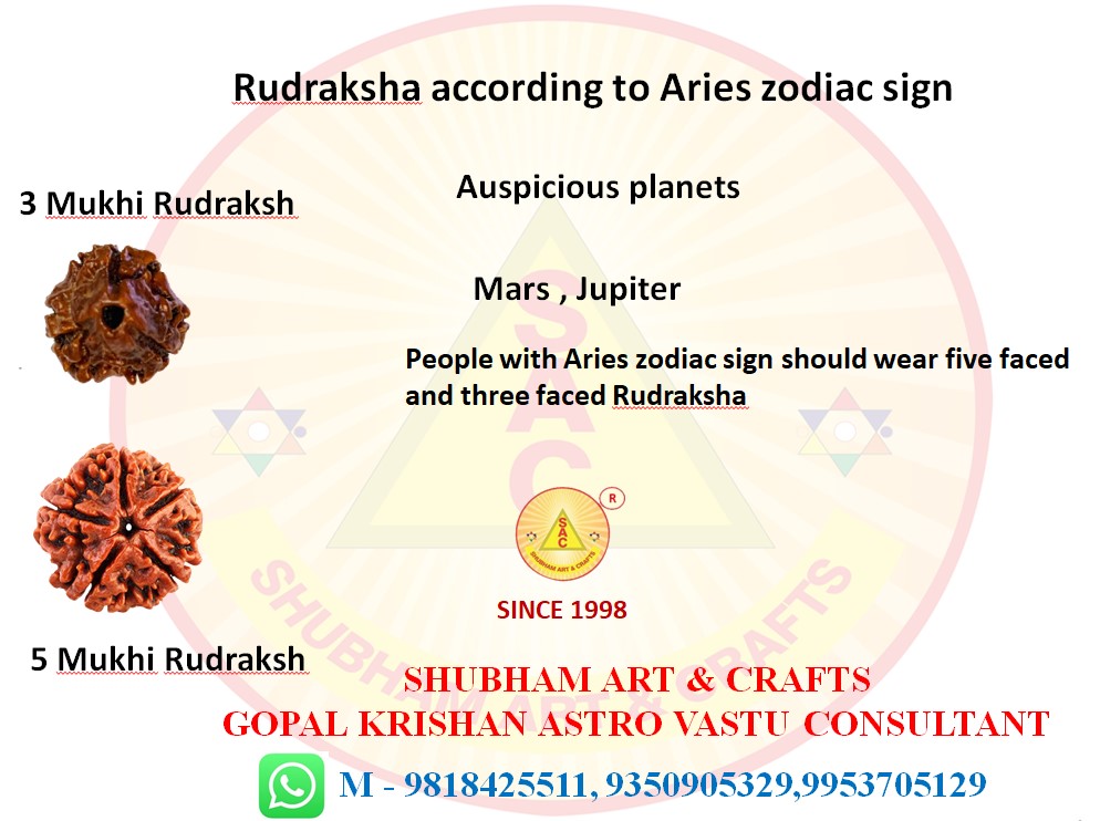 People with Aries zodiac sign should wear five faced and three faced Rudraksha